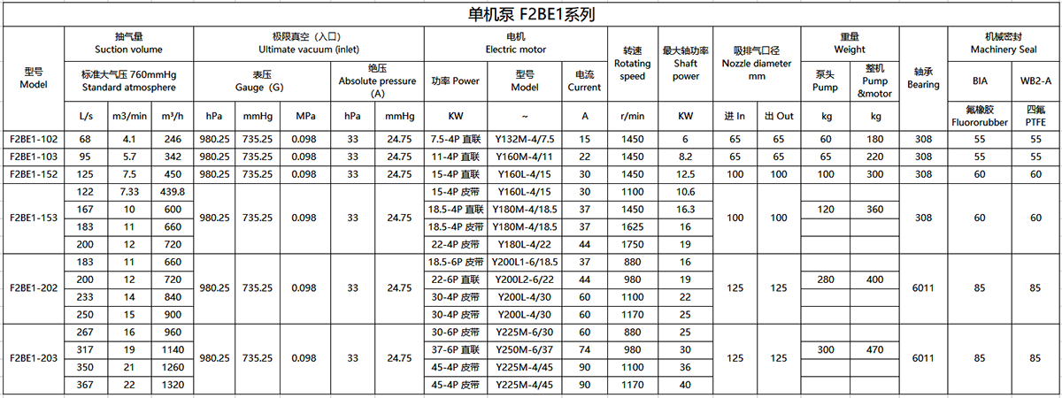 2.上列性能基于進(jìn)氣溫度20℃,進(jìn)水溫度15℃,排氣壓力1013hpa的條件,被吸入氣體為飽和空氣。(飽和空氣是指在對(duì)應(yīng)吸入狀態(tài)下,其相對(duì)濕度為100%的濕空氣。)3.抽氣速率、軸功率性能允差10%。
